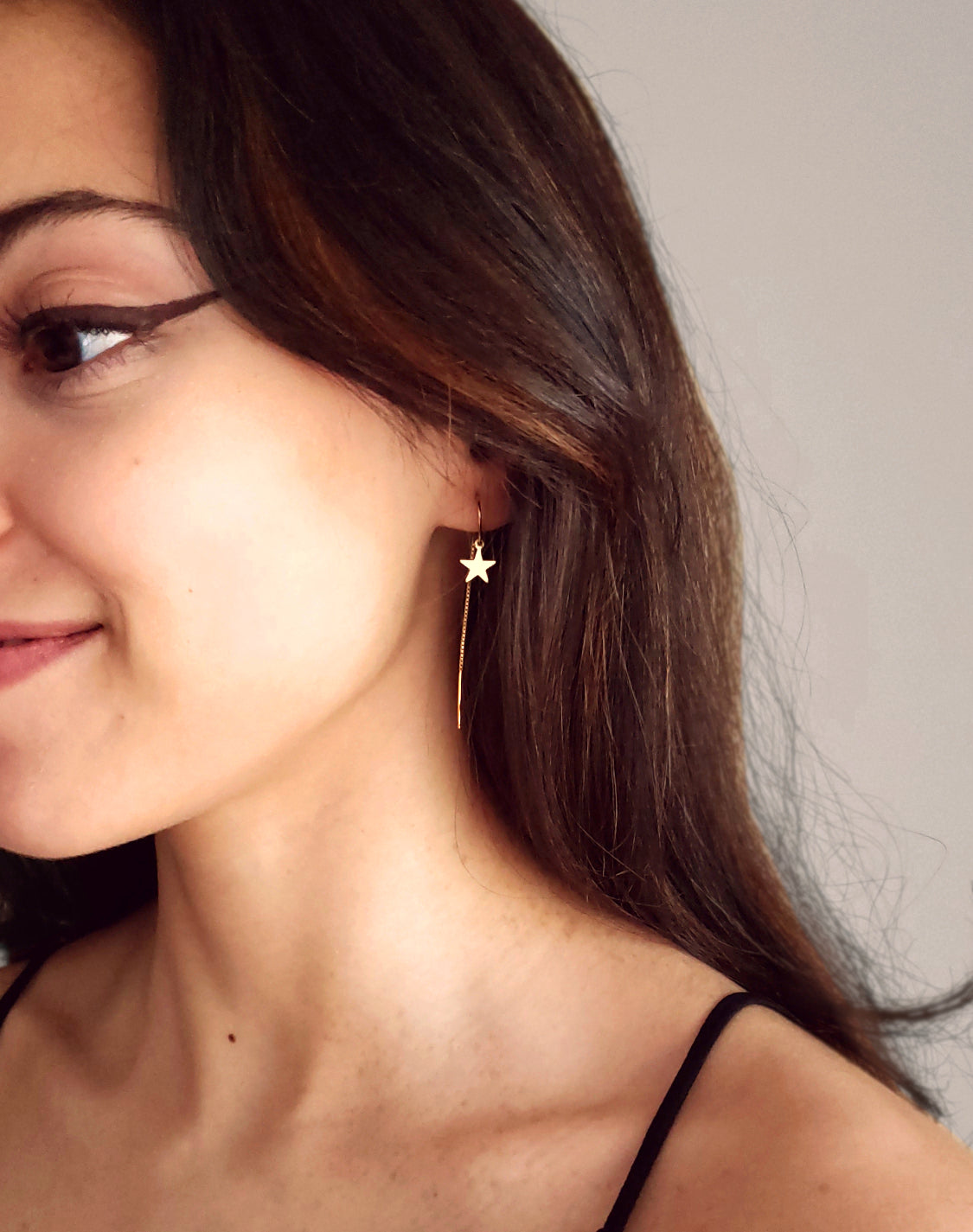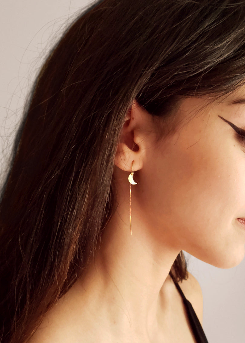 Crescent Moon + Star Threader Earrings
