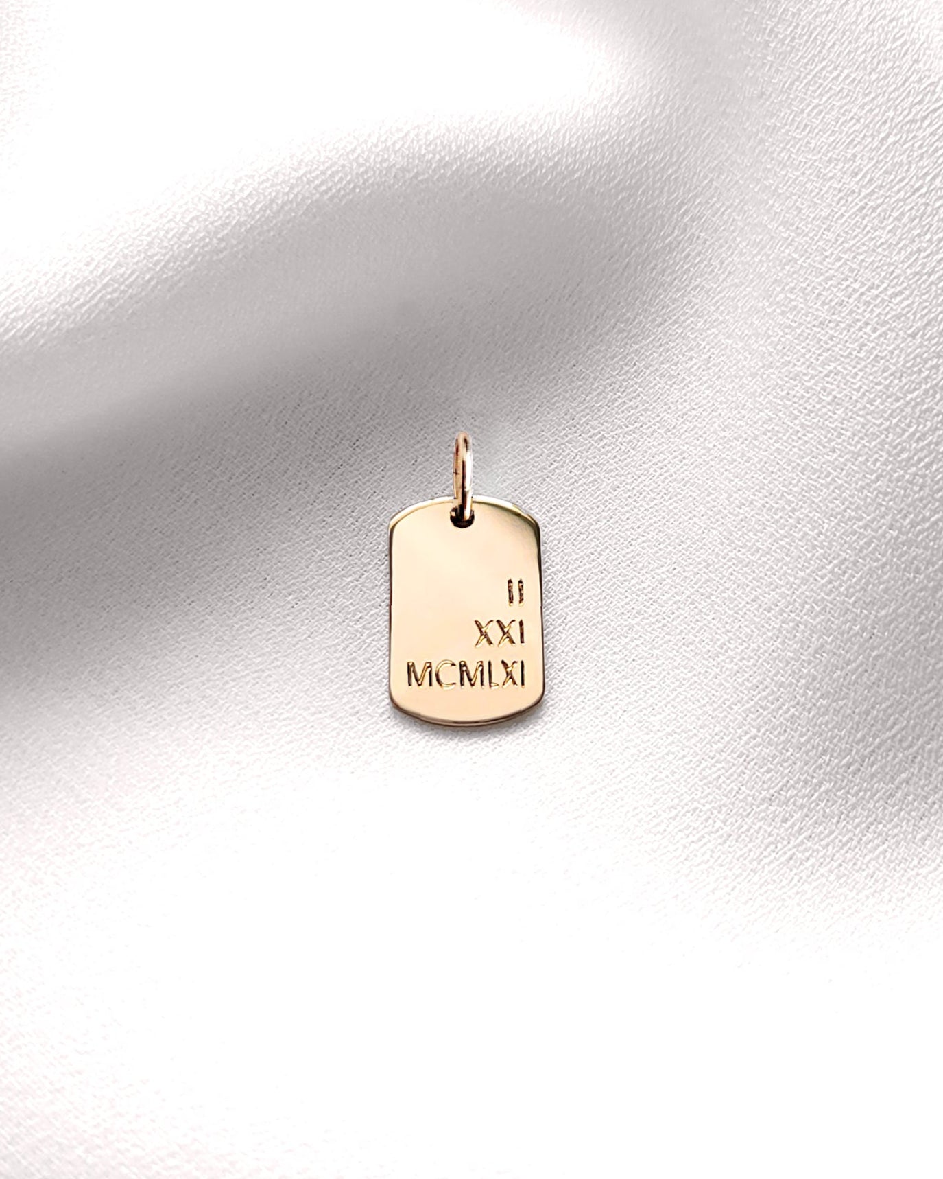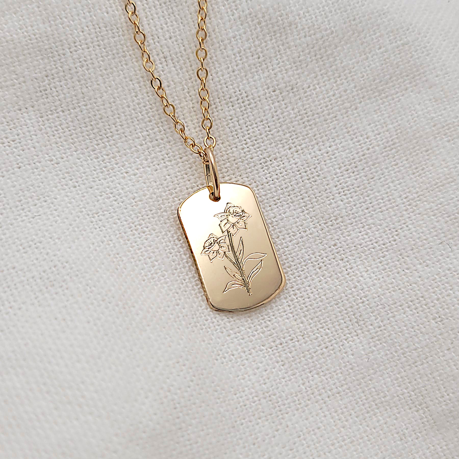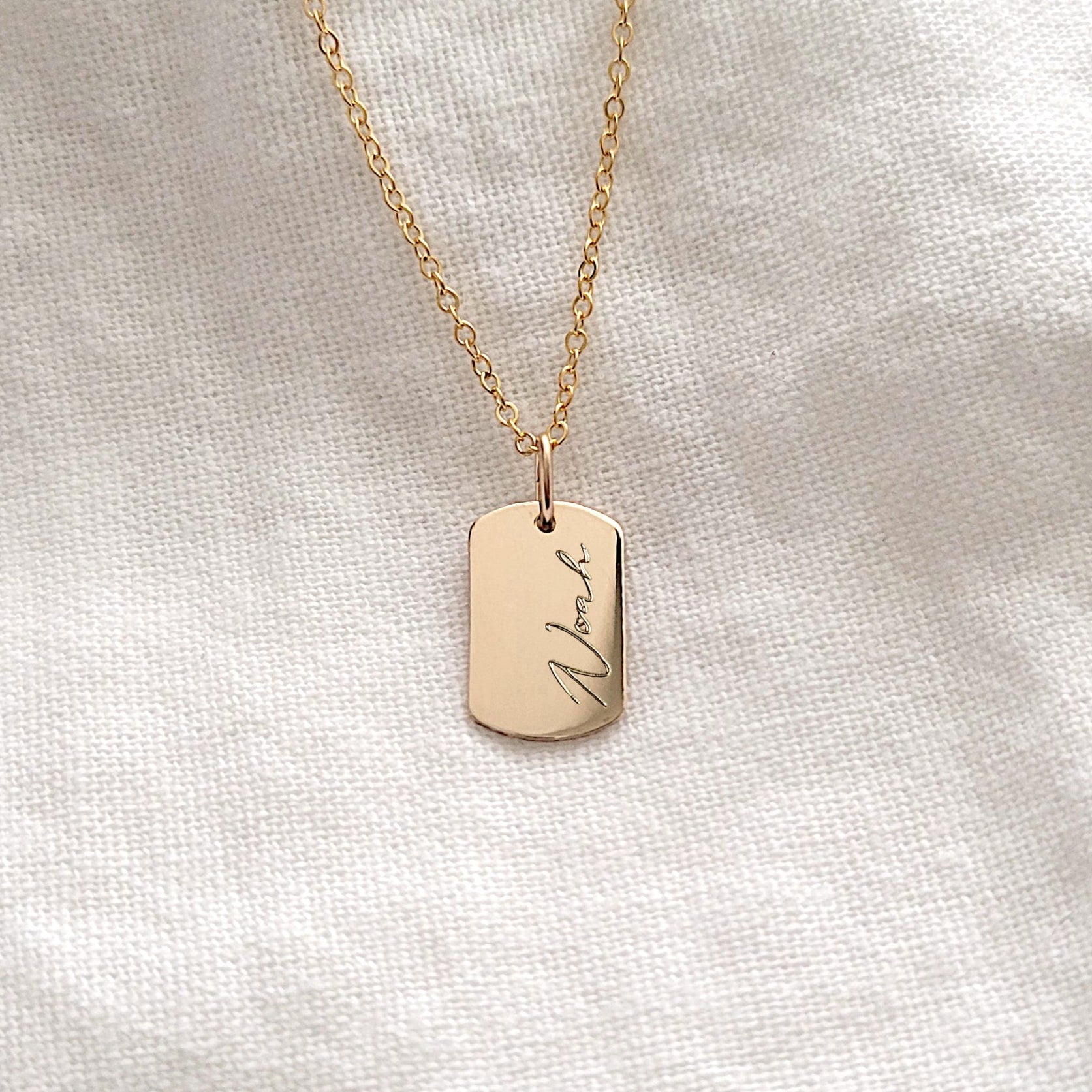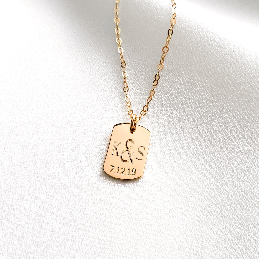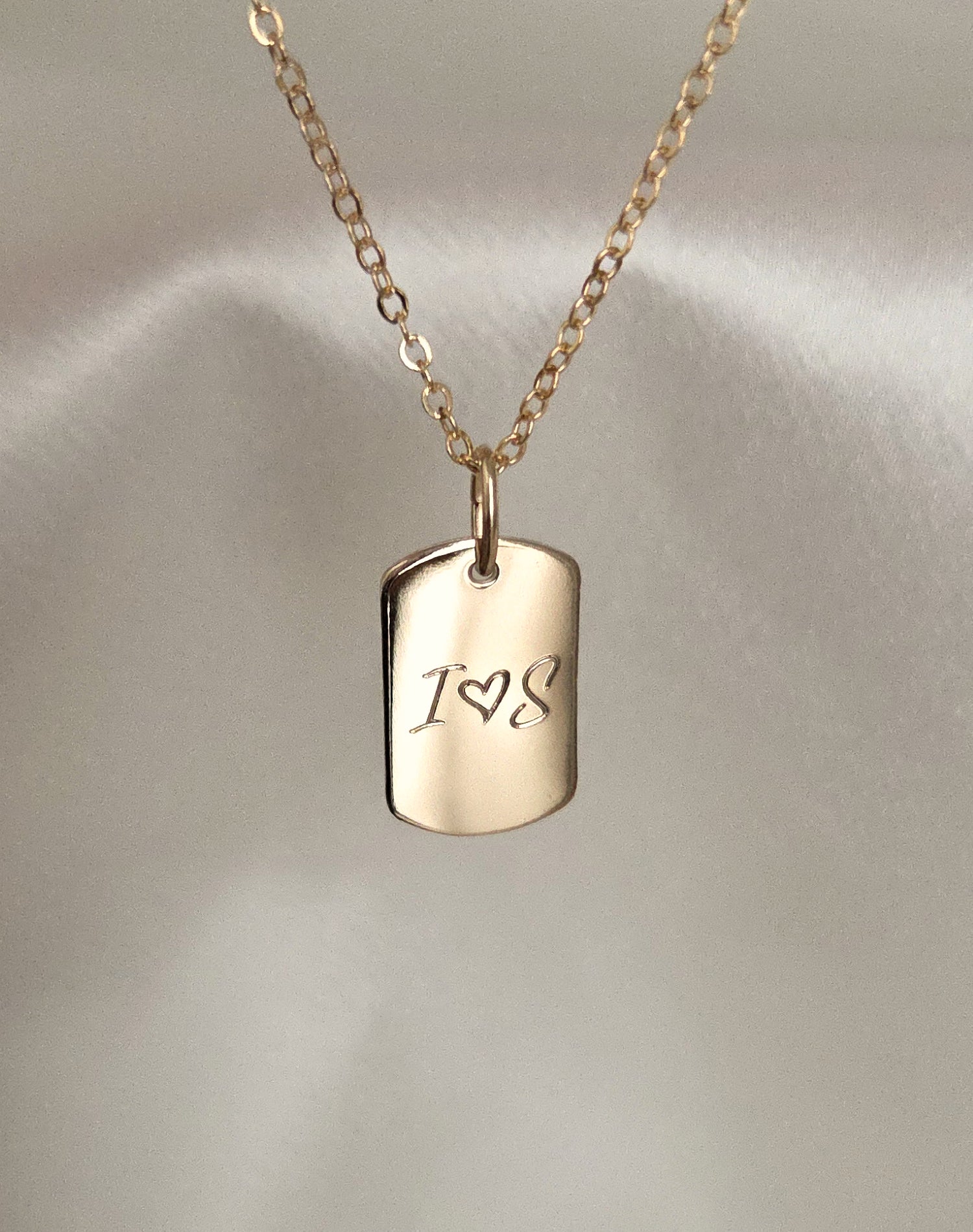 Custom engraved dog tag pendant necklace. Personalize with names, initials, roman numeral dates, kids & pets, birthflowers, symbols, zodiac and more! Custom designs are welcome!